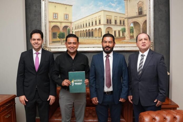 A nombre del Congreso del Estado, el presidente de la Junta de Gobierno y Coordinación Política (JUGOCOPO), Héctor Herrera Núñez, recibió de manera formal el Primer Informe Legislativo del diputado federal por el Partido Verde Ecologista de México, Gerardo Villarreal Solís.