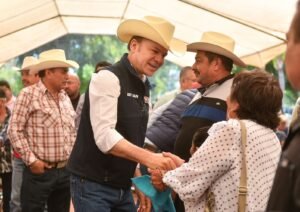 A la vez, externó su reconocimiento para el gobernador por mejorar “nuestros caminos, porque están en muy malas condiciones, tenemos nuestras troquitas y tractores ya viejitos y con tanto bordo, pues se nos descomponen, y en los ranchos no hay suficiente dinero para arreglar nuestras camionetas y si nos arreglan las carreteras va a ser mucho beneficio para nosotros los campesinos”.