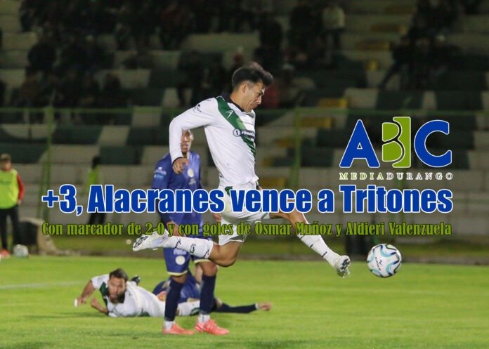 Alacranes de Durango volvió a imponer condiciones en casa al vencer 2-0 a Tritones Vallarta, resultado con el que mantiene marcha perfecta en el 2026, llega a 46 unidades en el torneo, se mantiene como líder del Grupo Uno y continúa a un punto del liderato general de la Liga Premier.