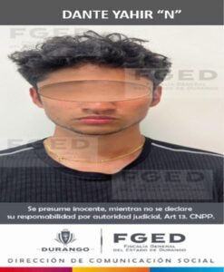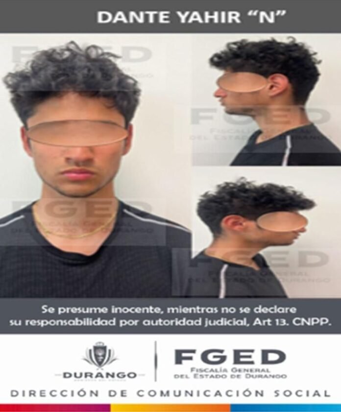 La Fiscalía General del Estado, a través de elementos pertenecientes a la Policía Investigadora de Delitos (PID), y mediante una Orden de Aprehensión girada por el Juez de Control y Enjuiciamiento, se logra la captura de Dante Yahir “N”, de 20 años de edad, con domicilio en el municipio de Durango, señalado como presunto responsable del feminicidio de Eva Liliana Montelongo Hernández, de 35 años de edad, encontrada sin vida en los baños de la tienda departamental Coppel en la zona centro de esta ciudad, presentando como causa de muerte, asfixia por estrangulamiento.