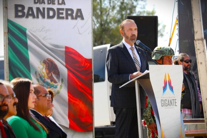 De manera simultánea, desde el Campo Militar Marte, la presidenta de México, Claudia Sheinbaum Pardo, tomó protesta mediante enlace digital a 920 escoltas escolares de las entidades federativas, quienes asumieron el compromiso de custodiar con honor nuestra enseña nacional.