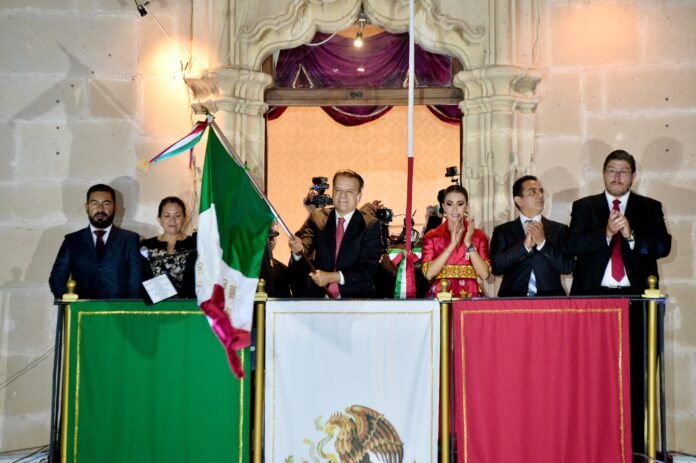En un ambiente de paz y armonía, el gobernador Esteban Villegas Villarreal dio el Grito de Independencia ante miles de duranguenses que en familia disfrutaron de una noche llena de música, alegría y tradición en la Plaza IV Centenario.
