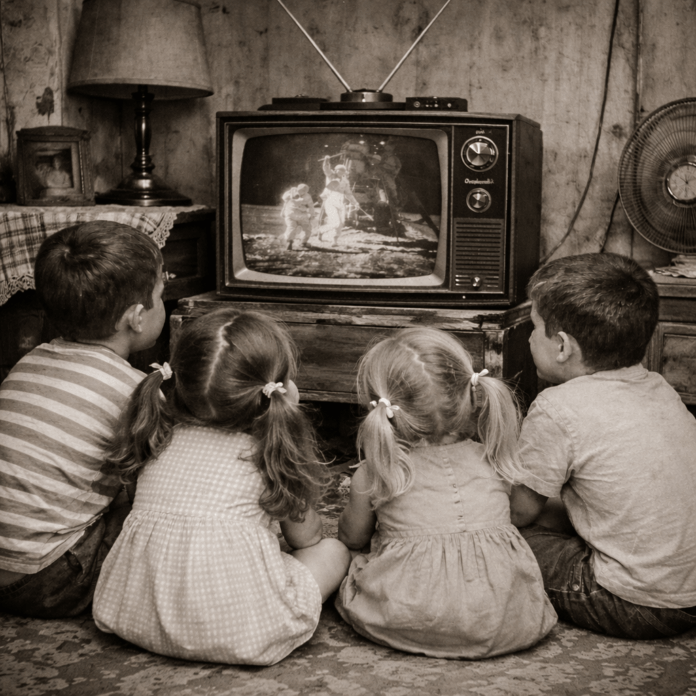 En salas modestas, entre silencios expectantes, familias enteras observaron cómo el ser humano tocaba por primera vez la Luna.