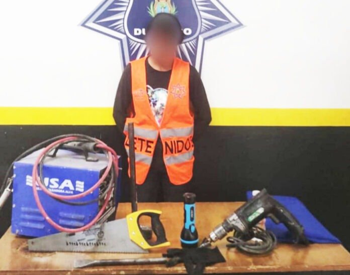 Fue un varón quien dio parte a las autoridades, por lo que los policías municipales acudieron puntuales al llamado para detener a María Elena, a quien sorprendieron con una máquina ultra soldadora de la marca Alfa, un taladro de la marca Sicelhead, y un serrucho, todo con un valor aproximado de $4500, objetos que fueron asegurados al momento de su detención.