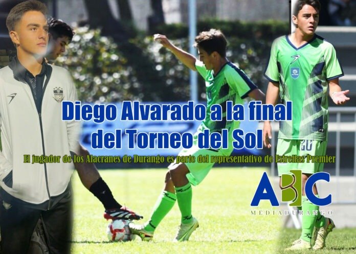 El futbolista duranguense Diego Alvarado Soto, jugador de los Alacranes de Durango, se encuentra a un paso del campeonato tras clasificar a la gran final del Torneo del Sol, defendiendo los colores del representativo Estrellas Premier, certamen que se desarrolla en las instalaciones de la Federación Mexicana de Futbol, en el Estado de México.