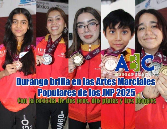 La delegación duranguense de Artes Marciales Populares cerró con éxito su participación en los Juegos Nacionales Populares 2025, celebrados en Oaxtepec, Morelos, con un total de 2 medallas de oro, 2 de plata y 3 de bronce, enalteciendo #ElValorDeNuestraGente.