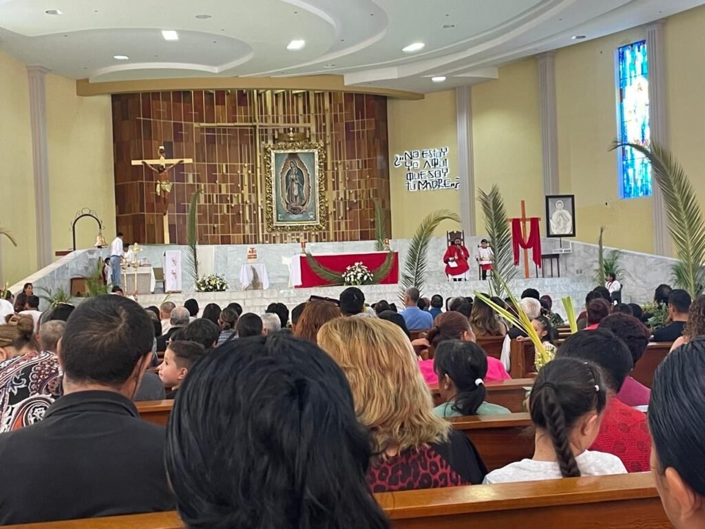 En la ciudad de Durango, esta conmemoración adquiere un matiz especial que combina la solemnidad religiosa con la tradición familiar. Desde tempranas horas, decenas de familias se congregan en templos emblemáticos como la Catedral Basílica Menor de la Inmaculada Concepción o en los santuarios de Guadalupe, llevando consigo ramos elaborados con palma, flores naturales y figuras tejidas que suelen representar cruces o pequeñas imágenes religiosas.