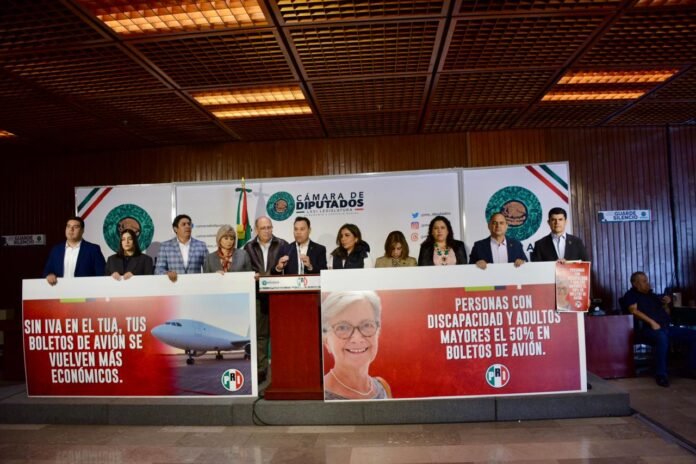 Acompañado por el coordinador Rubén Moreira Valdez y las y los legisladores del PRI, Yáñez Cuéllar explicó que la iniciativa busca atender la problemática de los altos precios de los boletos, derivados de factores como la demanda, los tiempos de compra y la oferta limitada de vuelos.