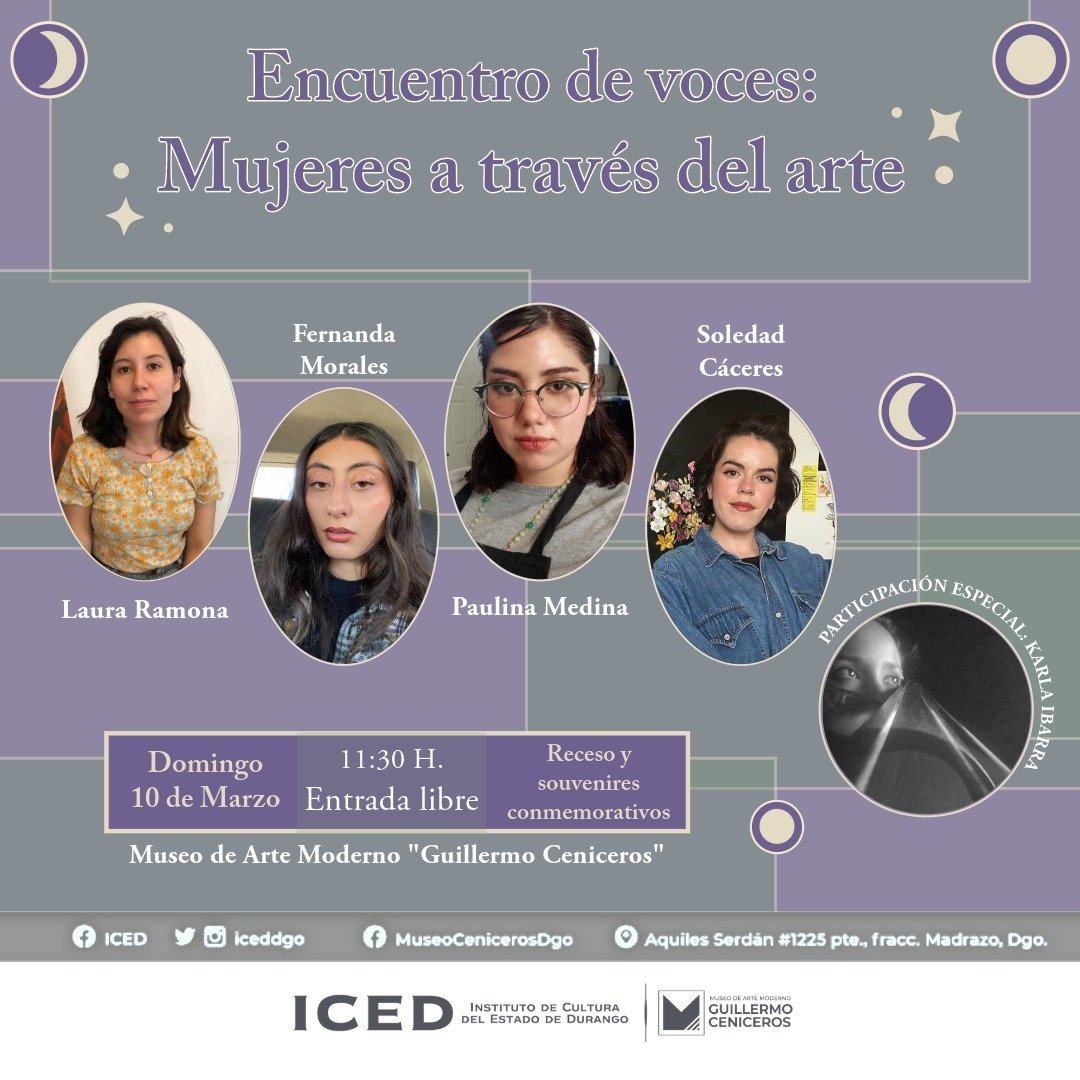 Tras su participación se tiene programada la presencia de la invitada especial, la chelista Karla Ibarra, quien compartirá su música con los presentes para después abrir espacio a preguntas y respuestas para las panelistas en una interacción del público con ellas. Como muestra de apoyo y reconocimiento a la conmemoración del 8 de marzo, Día Internacional de la Mujer, el Museo ofrecerá algunos obsequios especiales que se repartirán entre las asistentes. El Museo de Arte Moderno Guillermo Ceniceros está ubicado en calle Aquiles Serdán 1225, poniente, Fraccionamiento Madrazo en la Zona Centro antes de llegar al Boulevard Dolores del Río.