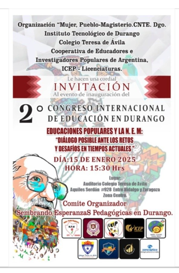 Es una oportunidad única y darà reconocimiento académico por parte del Instituto Tecnológico de Durango y la Cooperativa de Educadores e Investigadores Populares de Argentina vía digital. Se tiene una cuota de recuperación de 500 pesos para maestros y público en general, así como 250 a estudiantes.