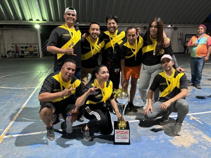 La escuadra de Exxit-Oxxos se coronó como campeona del Torneo de Voleibol Oxxo 2024, que con la participación de aproximadamente un centenar de trabajadores de esta cadena de tiendas, finalizó el pasado jueves en las instalaciones deportivas de la Facultad de Ciencias de la Cultura Física y Deportes de la UJED.