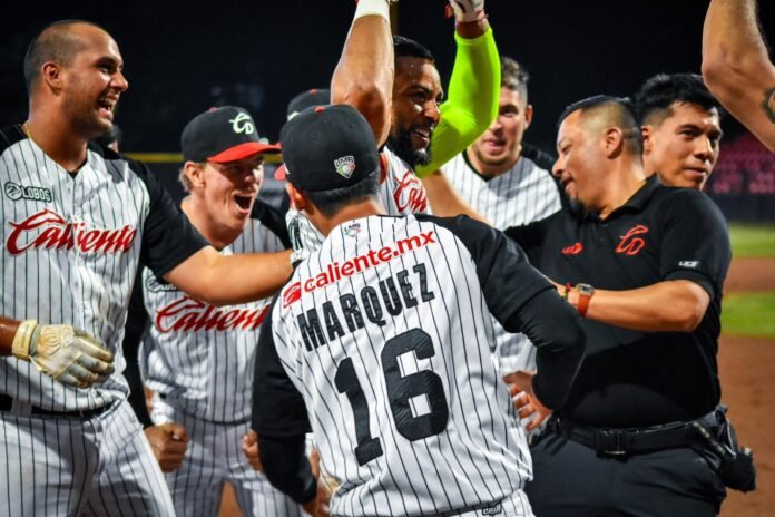 DURANGO.- Cuando parecía que el mundo se le venía encima al abridor Nico Tellache y al plantel completo de Caliente tras recibir cuatro jonrones en la segunda entrada, los hombres de Luis Borges lo volvieron a hacer y en un duelo de volteretas terminaron dejando en el terreno a sus rivales derrotándolos 8-7 con tremendo batazo de James Nelson en una entrada de cerca de 4 mil aficionados en el Estadio Francisco Villa.