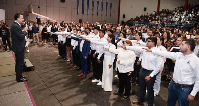 “La entidad duranguense, va a ser la potencia económica en el norte de México y lo estamos logrando porque nos la creemos”, afirmó enfático el gobernador del Estado, Esteban Villegas Villarreal, en el marco del Día del Estudiante Técnico y del 50 aniversario del CBTIS 89, donde tomó protesta a 23 presidentes y presidentas de las diferentes instituciones técnicas, mismos a los que invitó a prepararse para formar parte de las inversiones extranjeras que están llegando a Durango en su gobierno.