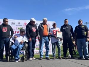 En la condecoración también estuvieron presentes Adrian Animas, titular del deporte en el Instituto de Desarrollo Humano y Valores, Roberto Chaparro Guzmán 1er. Arbitro con carnet de silbante profesional en Durango, Margarito “El Vampiro” Ortega, Alfonso Mercado, impulsor del soccer en Durango con la metodología de CEFOR Mega, Octavio Soto y Jacinto Castro, ex jugadores del Zaragoza y ahora representantes del equipo Amigos de Santa Barbara.
