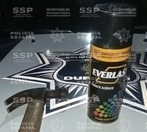 El adolescente detenido es A.R.G. de 15 años de edad con domicilio en la colonia Valle Verde de la ciudad de Durango, Dgo., quien fue sorprendido junto a dos compañeros rompiendo con un martillo los vidrios y pintando con una lata de spray con pintura esmalte color negro las paredes de los salones de la escuela donde estudia.
