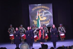 Destacara desde luego la participación de la Bande de Guerra del 62 Batallón de Infantería dentro de este acto que marcó el fin de curso 2023-2024 del Bachillerato Humanista “Albert Einstein”, que enarboló la frase que reza: “El éxito de hoy es el principio de muchos de los que obtendrás, con el esmero y entrega completa en lo que haces, sin desviar la meta trazada”.