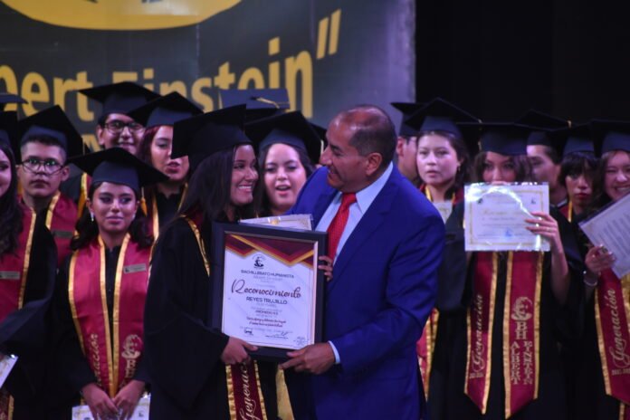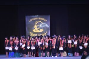 Las amplias instalaciones del icónico teatro Ricardo Castro, fueron el marco en que se llevó a cabo la ceremonia de graduación de 130 egresados del Bachillerato Humanista “Albert Einstein” del Sistema CADI, y ahí, ante un nutrido público en el que destacó la presencia de las familias de graduados, el director de la institución, Miguel Ángel Lucero, destacó el esfuerzo de esta generación que comenzó precisamente en 2021, año de la pandemia.