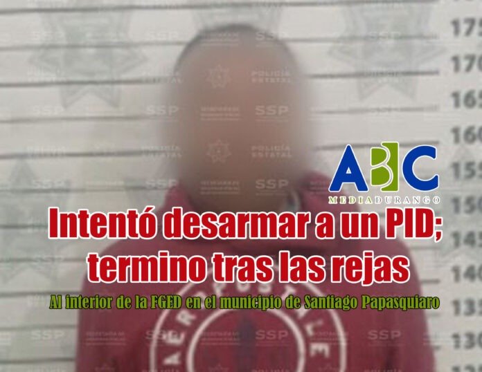 Elementos de la Policía Estatal detuvieron a un varón que agredió físicamente e intentó desarmar a un agente de la Policía Investigadora del Delito, esto, ni más ni menos, que al interior de las instalaciones de la Fiscalía General del Estado, con sede en la ciudad de Santiago Papasquiaro, Durango.