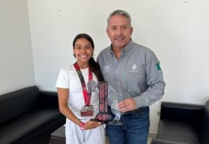 Samantha Fajardo y Aseret Marín fueron felicitadas por César Cárdenas, titular del deporte en el estado, quien recibió con alegría a las seleccionadas nacionales en su oficina. Ellas representarán a México en esta importante competencia internacional, por lo que fueron felicitadas y alentadas a continuar entrenando con dedicación y esfuerzo. El respaldo del gobernador Esteban Villegas Villarreal está garantizado, ya que estas atletas destacadas enaltecen #ElValorDeNuestraGente y llevan en alto el nombre de México y su estado Durango.