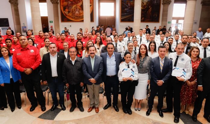 Durango reconoce a quienes trabajan diariamente por la paz, tranquilidad y bienestar de la gran familia duranguense. Durante ceremonia el alcalde Toño Ochoa honró al personal de Seguridad Pública y Protección Civil, cuyo esfuerzo ha sido clave para proteger la vida y cuidar la casa de todos: Durango, con especial atención en su labor oportuna en crisis de salud mental.