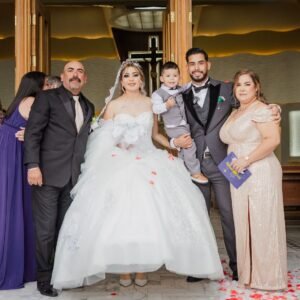 Luego los felices novios, fueron declarados marido y mujer, por el sacerdote oficiante, en el atrio del templo, para luego los presentes ovacionar y llenar de bendiciones a los ahora esposos, y en primera fila y felicitando a sus papitos el pequeño Isaac Alejandro, el primogénito de la feliz pareja.